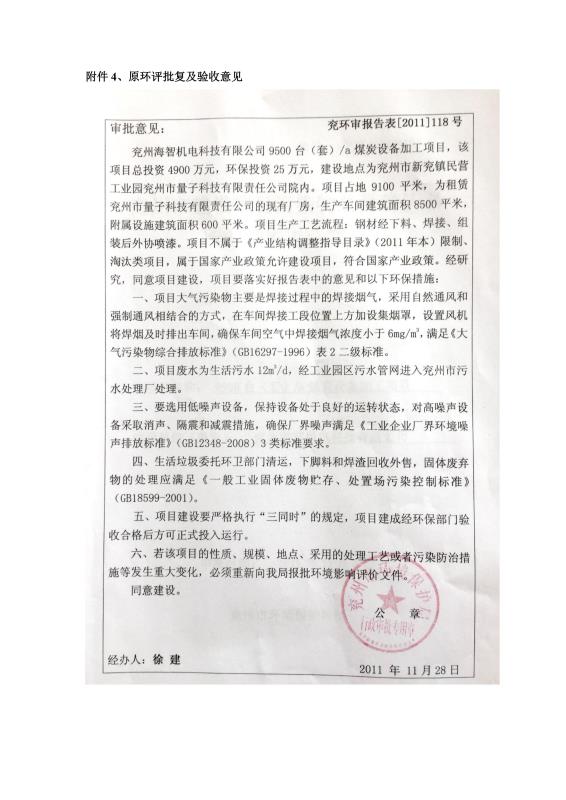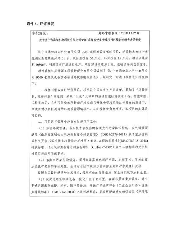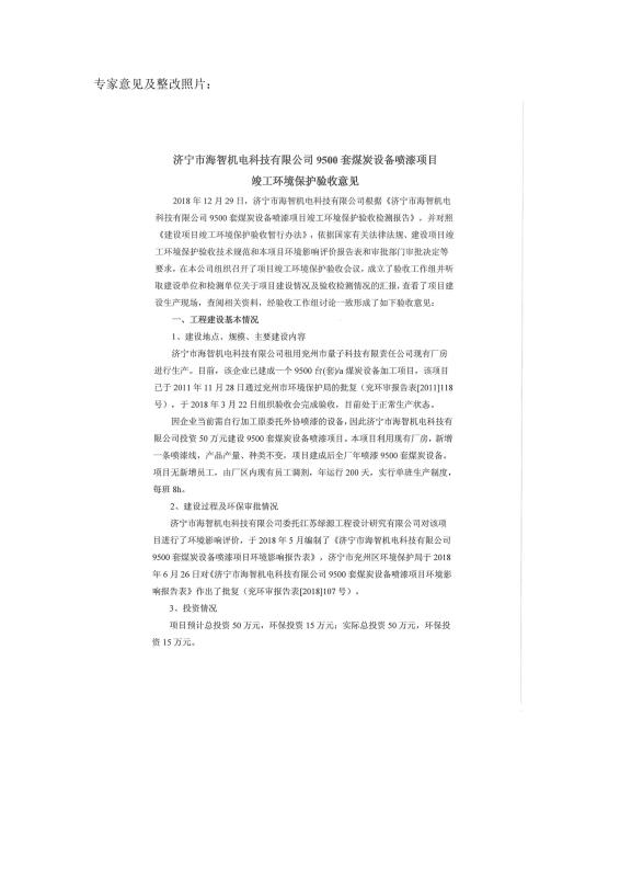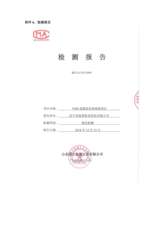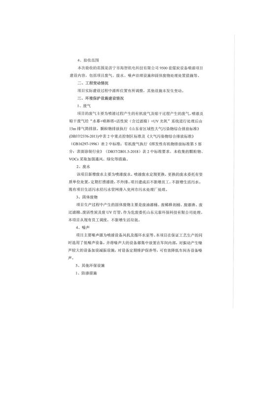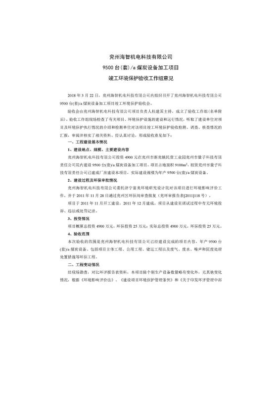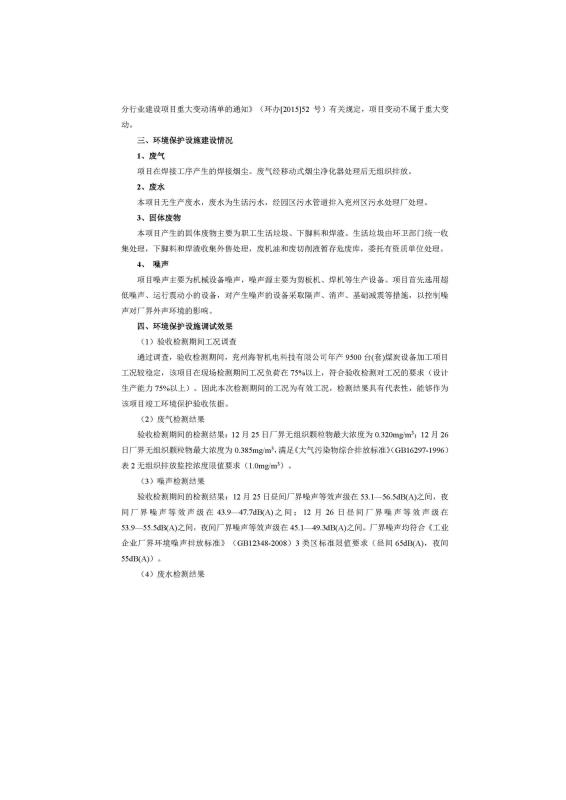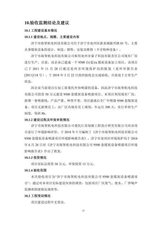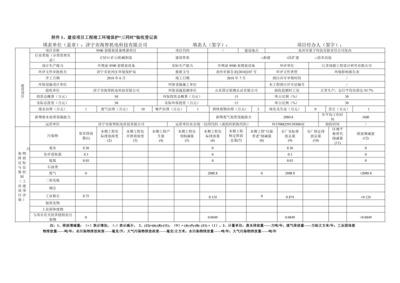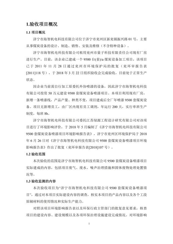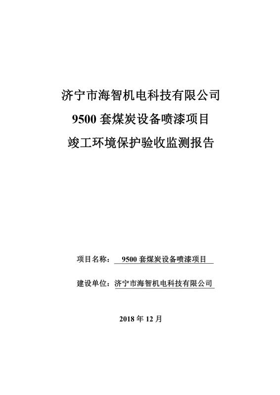 > 9500套煤炭設(shè)備噴漆項目竣工環(huán)境保護(hù)驗收監(jiān)測報告