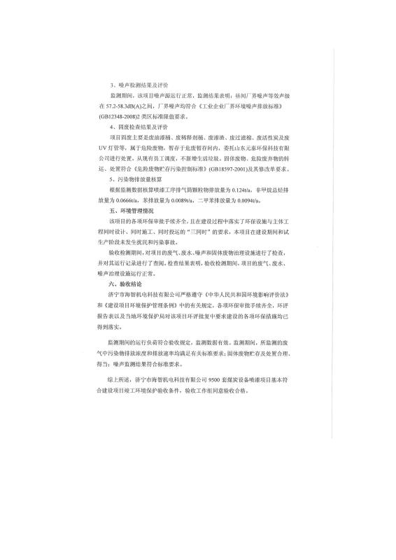 9500套煤炭設(shè)備噴漆項目竣工環(huán)境保護(hù)驗收監(jiān)測報告